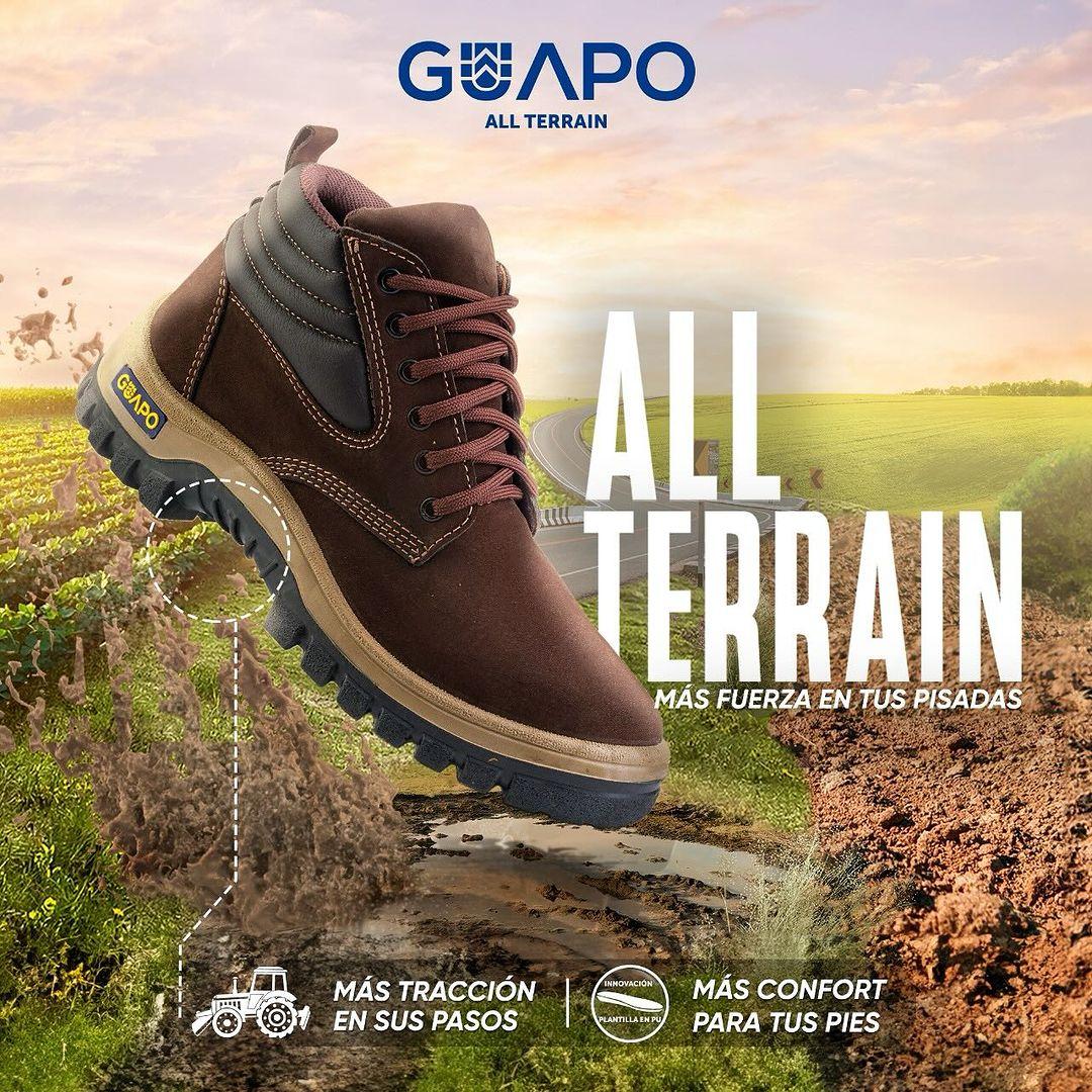 La bota Guapo suela All Terrain está diseñada para acompañarte en tus aventuras con su innovadora suela en pu, que brinda mayor confort para tus pies.