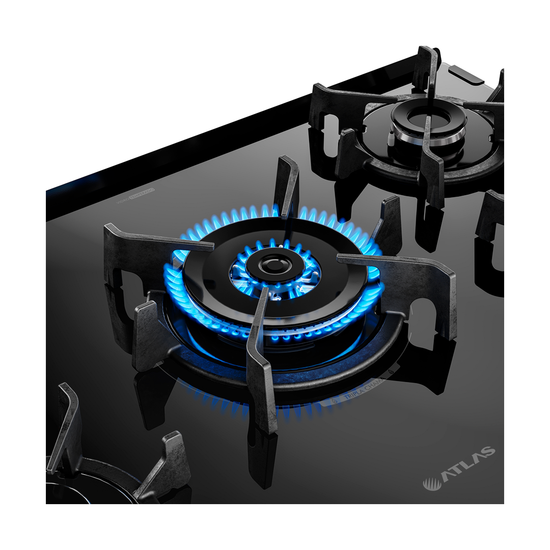 - Superficie de vidrio templado negro, fácil de limpiar.