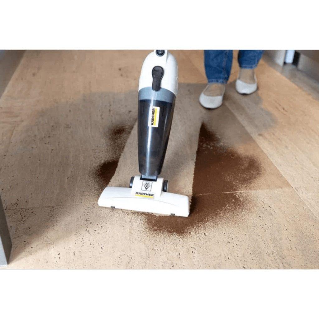 La Kärcher VCL 1 es una aspiradora de mano y escoba eléctrica versátil y compacta, diseñada para facilitar la limpieza diaria en el hogar. Combina potencia, ligereza y comodidad, siendo ideal para eliminar polvo y suciedad de suelos, muebles y áreas de difícil acceso.