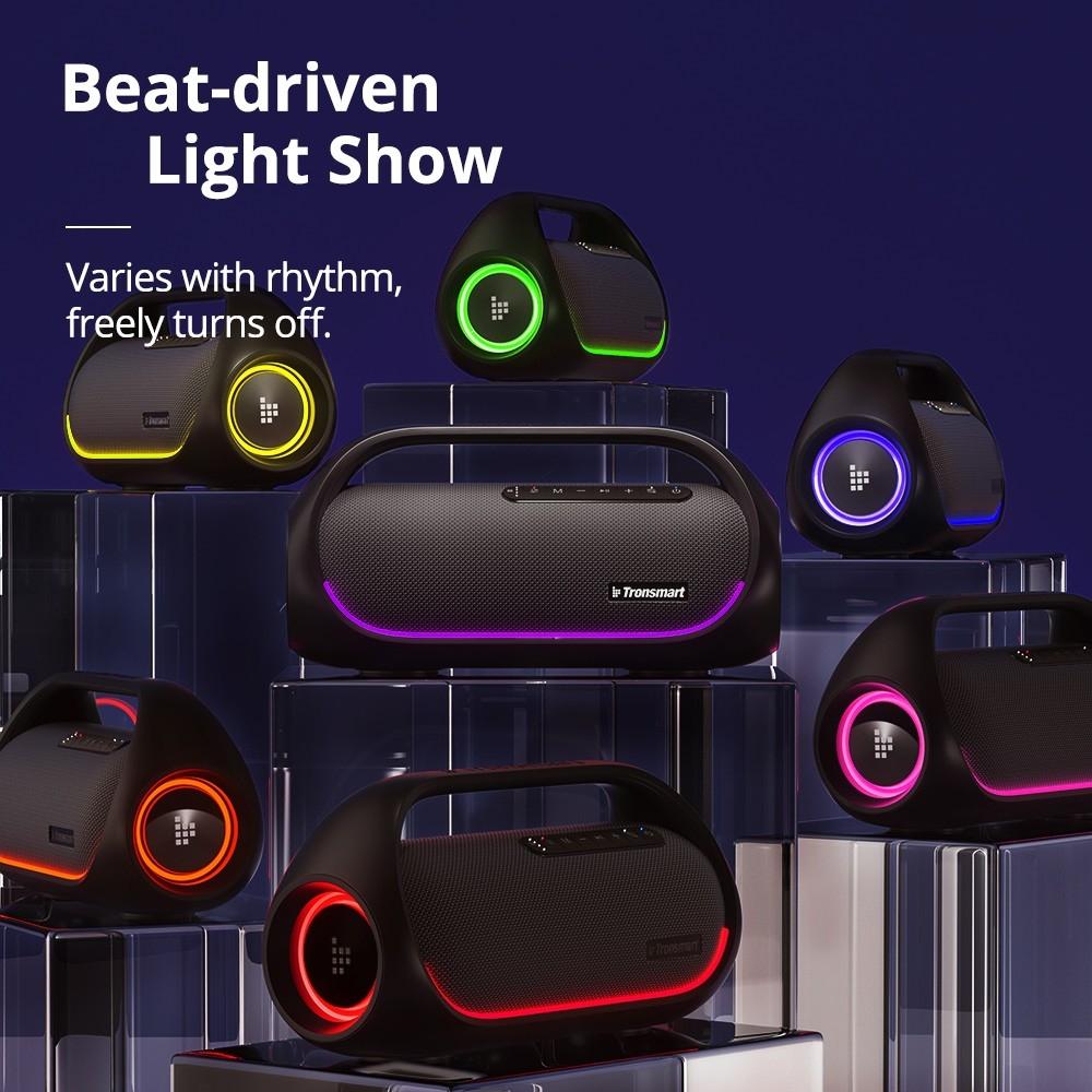 • Luces LED al ritmo de la música: Los deslumbrantes halos brillan al ritmo de la música, creando una experiencia auditiva de alto nivel. Combina 6 modos de EQ personalizados para llenar tu hogar o jardín con un impresionante ambiente de fiesta.