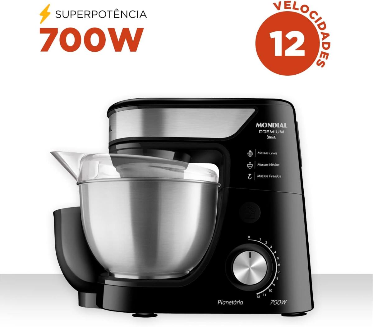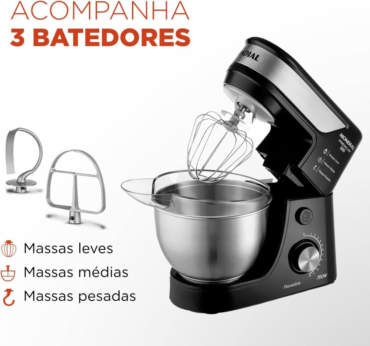 BATIDORA PLANETARIA MONDIAL 700W PREMIUM INOX - 2 BOLS BP-02P-B-TI