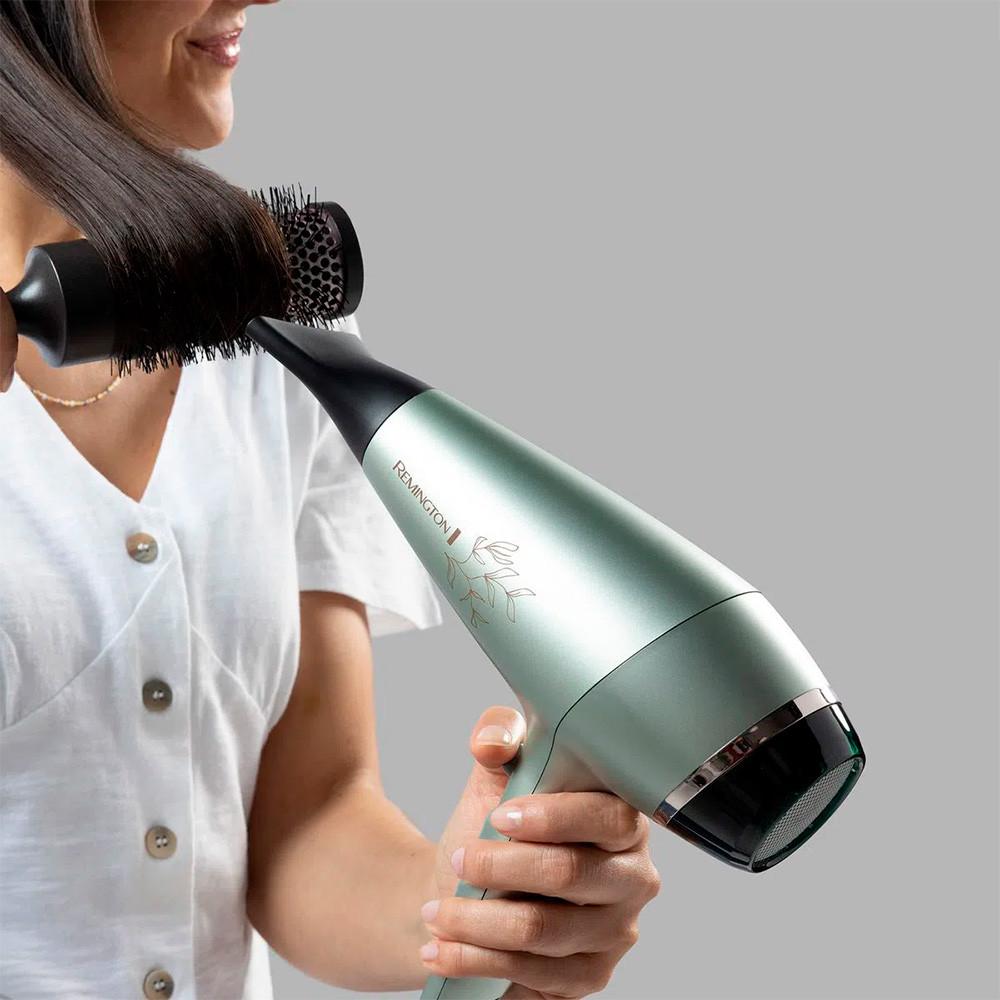El secador de cabello Remington BotanicalsTM aprovecha los elementos que se encuentran en la naturaleza. Su rejilla está recubierta de microacondicionador cerámico avanzado enriquecido con extracto de aloe vera, jojoba y rosa mosqueta, que se libera en el aire y cuida cada hebra mientras se seca. El secador cuenta con nuestro suave ajuste de temperatura BotaniCare, que le brinda la opción de estilizar a una temperatura más baja de 185 °C . Además, cuenta con un difusor y un concentrador que te ayudan a estilizar tu cabello a tu manera, para cualquier versión de ti mismo que quieras ser hoy.