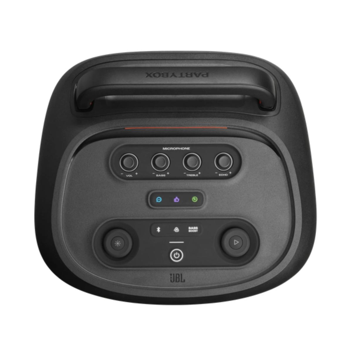 El JBL PartyBox 520 ofrece un espectáculo de luces vibrante y nuestro sonido más potente, audaz y contundente hasta la fecha, gracias a la nueva tecnología AI Sound Boost, para que nadie olvide tus fiestas. El sonido es potente, pero el altavoz es fácil de transportar, para que puedas llevar la fiesta a todas partes, desde el patio trasero o la piscina hasta ese lugar increíble en mitad de la naturaleza. El asa con fácil agarre y las ruedas anchas del PartyBox 520 permiten moverlo fácilmente para llevarlo allá donde vayas. Con hasta 15 horas de reproducción, puedes organizar varias fiestas antes de tener que recargar la batería. Y no te preocupes por salpicaduras ni derrames, este altavoz está diseñado para sobrevivir a las fiestas más locas.
